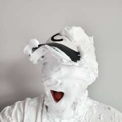 Chuck M was surprised by stillmuddy with a big sloppy cream pie to the face